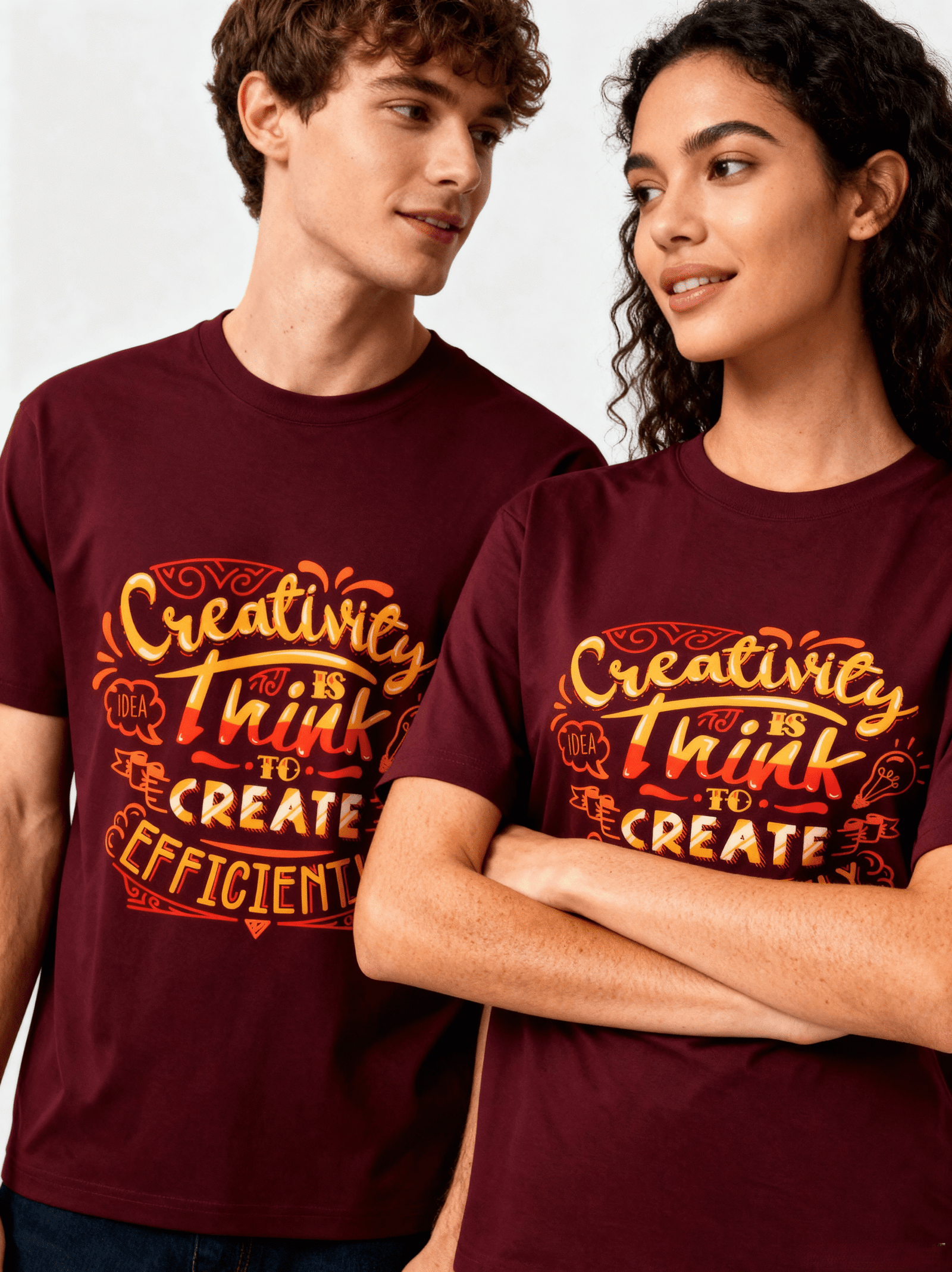 This piece is for makers who think with intent and build with speed. The hand-drawn lettering glows in a warm gradient that reads creative and focused, a wearable mantra that cuts through noise and gets you back to the work. It looks bold, feels calm, and reminds you why you started.