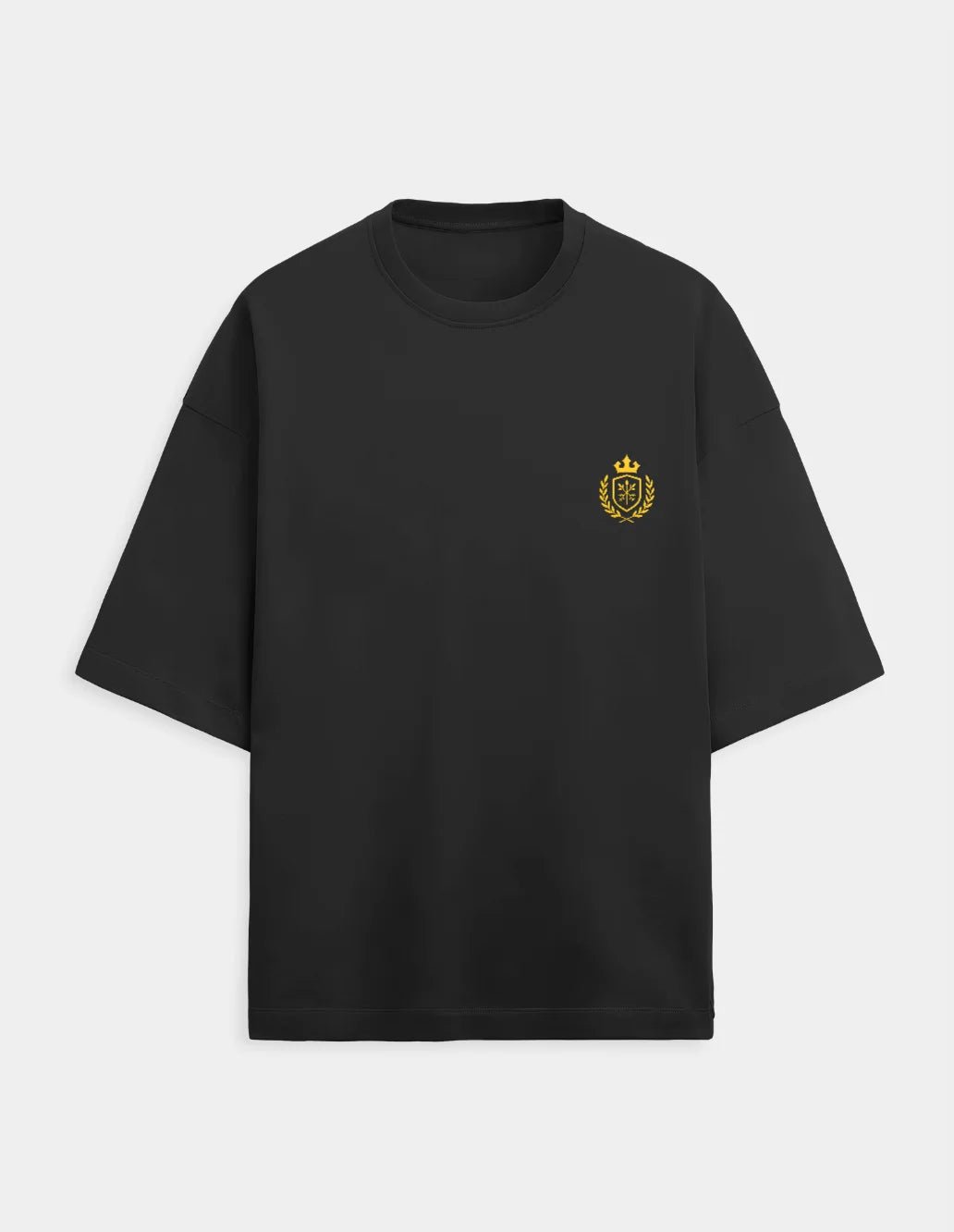 The only visual statement? A 2.25 × 2.75-inches embroidered gold crest, left side on chest — bold enough to be noticed, minimalist enough to stay timeless.