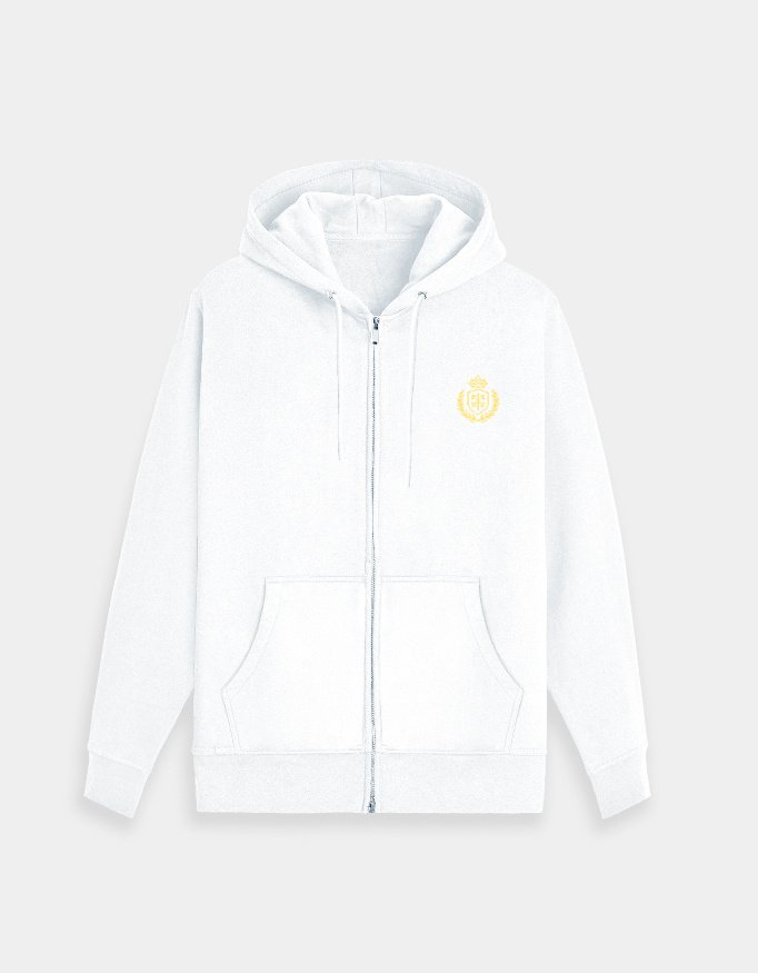 A full-length metal zipper grounds the silhouette with utility, while the double-stitched construction ensures long-term durability. The front pouch pockets are seamlessly integrated for function without bulk. Embroidered on the chest: CozyVora’s golden insignia — a quiet mark of strength, not spectacle.