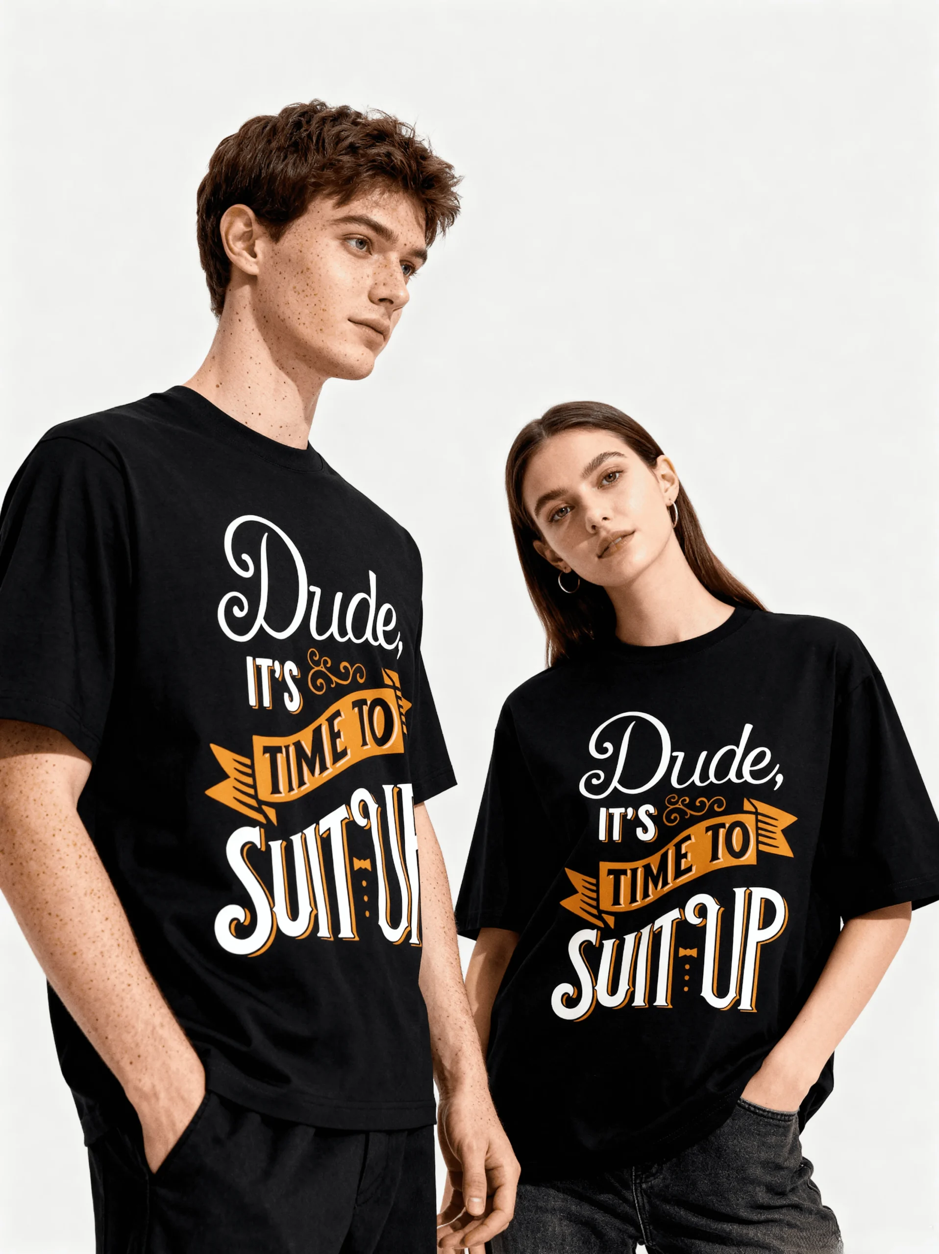 Suit Up, Own the Room Not every suit is stitched from just fabric. Some are stitched from mindset. Suit Up is a reminder that confidence isn’t worn — it’s built. The bold typographic print in crisp monochrome carries the aura of power dressing, distilled into everyday comfort. It’s not just a tee; it’s your armor…